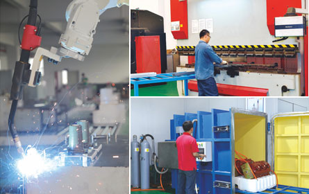 生產(chǎn)設(shè)備:德國、芬蘭和日本進(jìn)口的數(shù)控加工設(shè)備、全自動靜電噴涂生產(chǎn)線、鈑金加工設(shè)備、機(jī)械加工中心